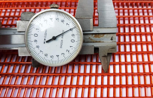 唐山金路的聚氨酯鋼絲篩網(wǎng)采用進(jìn)口原料,其彈性體及自身良好的馳張性能,可以在動態(tài)情況下有效避免堵孔現(xiàn)象。