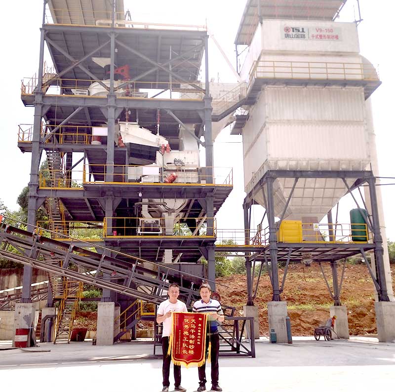 天馬建筑是一家現(xiàn)代化綠色環(huán)保型生產(chǎn)企業(yè),該公司專業(yè)生產(chǎn)商品混凝土。高度重視產(chǎn)品的質(zhì)量,以“質(zhì)量第一,服務(wù)至上”為企業(yè)宗旨,現(xiàn)需擴(kuò)建一條時(shí)產(chǎn)150噸機(jī)制砂生產(chǎn)線。經(jīng)過多方考察、對(duì)比,最終選定了唐山金路的制砂生產(chǎn)線。唐山金路根據(jù)天馬建筑制砂原料和用砂需求,為天馬建筑量身定制的這套時(shí)產(chǎn)150噸的V9干法制砂生產(chǎn)線。項(xiàng)目投產(chǎn)近一個(gè)月以來,得到天馬建筑的高度認(rèn)可與好評(píng),在項(xiàng)目實(shí)施階段,對(duì)我公司安裝人員的技術(shù),給予肯定與認(rèn)可,特送錦旗表示感謝。這錦旗不僅僅是榮譽(yù)的象征,更代表“天馬建筑”對(duì)于唐山金路全體工作人員的認(rèn)可,客戶的滿意就是我們前進(jìn)的動(dòng)力。