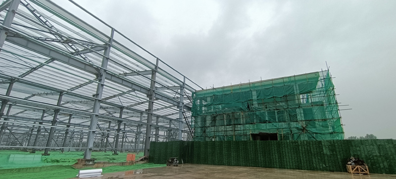 智能化生產(chǎn)廠房包括數(shù)字化展廳、備品備件庫等,建筑面積13800平米,目前所有的鋼結構安裝已經(jīng)完成,正在進行封裝工作。